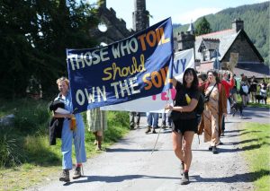 Isobel participated in a land rights demonstration in Scotland, organised by the Landworkers’ Alliance, which she attended as part of her work in education for sustainable farming. Photo by Clem Sandison.