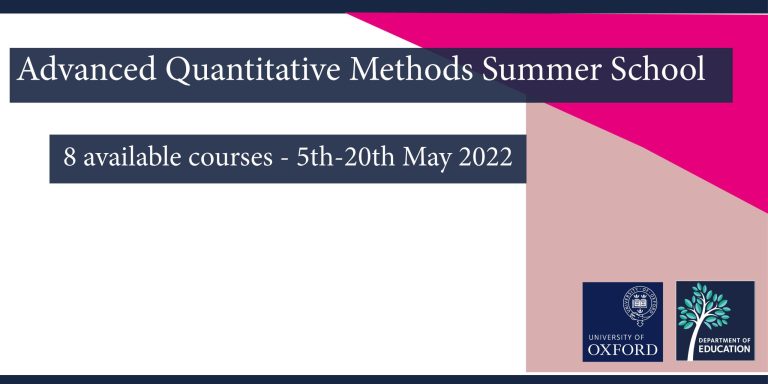 The Quantitative Methods Hub at the Department of Education, University of Oxford, launches its 2022 Advanced Quantitative Methods Summer School, this year consisting of eight different online courses running during three calendar weeks in May (weeks 2, 3 and 4 of Trinity Term; 5-20/5/2022).
