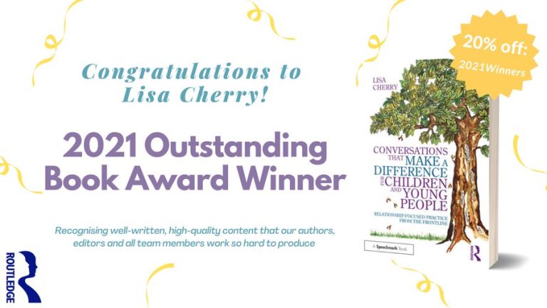 Congratulations to Lisa who has been awarded Routledge’s Outstanding Book in HSS & BS&E for her latest book ‘Conversations that Make a Difference for Children and Young People‘, which endeavours to explore and build upon the research underpinning the impact on care-experienced adults.