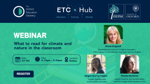 Teaching English is a powerful tool for engaging students with big issues in our contemporary world. What book choices are suitable for developing thoughtful classroom conversations about climate and nature in a context in which both are in crisis? This webinar will explore a wide range of literature – both classic and contemporary – that works in the secondary key stages to explore broadly ecological themes such as nature connection, changing climates, resource use, relationships to land, food systems, abundance and scarcity, and engagement with more-than-human life. Join Megan Murray-Pepper and Phoebe Mortimer – secondary English teachers and sustainability teaching experts – and researchers from Oxford University for an exploration of these ideas and a dynamic group discussion.