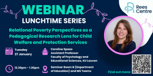 This talk examines how relational poverty perspectives can provide a compelling foundation for pedagogically informed research on family poverty and child welfare and protection services, by highlighting the relational determinants of poverty and the ways in which poverty, in turn, shapes relationships within families, across communities, and between families and child welfare services.